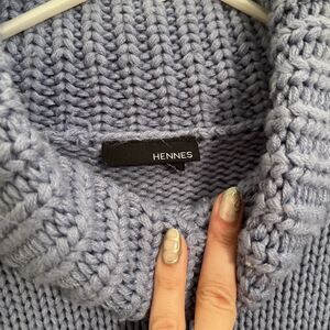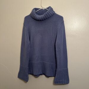 HENNES Oversized Flare Sleeve Turtleneck Knit Cashmere Blend Sweater, Blue- Med.