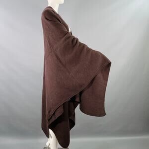 HENRI BENDEL shawl in a brown merino wool angora rabbit knit featuring an all over rib knit design. Made in Italy.