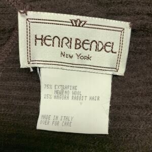 HENRI BENDEL Brown Ribbed Merino Wool Angora Rabbit Knit Scarf Shawl