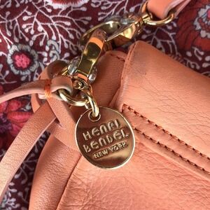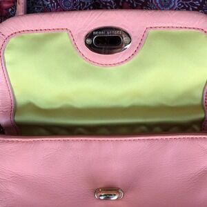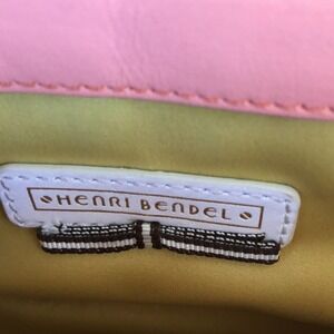 HENRI BENDEL Crossbody purse! Small evening size light peach color with yellow silk inside. Gold hardware. Size 7,4, 1 3/4