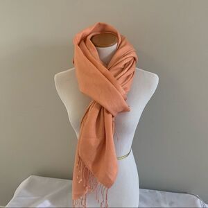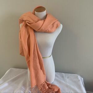 Solid salmon pink, pashmina scarf wrap, 70% cashmere with 30% silk, handwoven in Nepal, fringe trim.