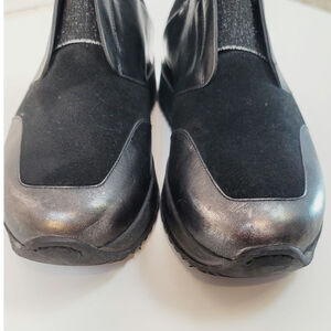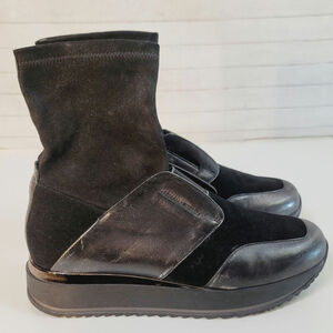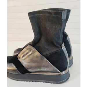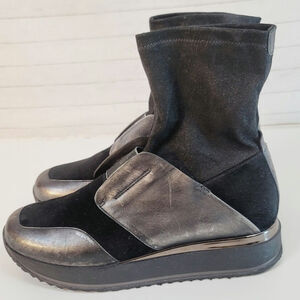HENRY BEGUELIN SOCK ANKLE BOOTS in Metallic Silver Black, sz 39 EU/ 8.5 US