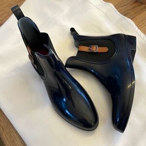 HENRY FERRERA COLLECTION NAVY RAIN BOOTIES. STYLE IS CLARITY. NEW IN BOX. CUTE BUCKLE DETAIL