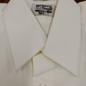 HENRY SEGAL IVORY FITTED MICROFIBER LAY DOWN COLLAR DRESS SHIRT.