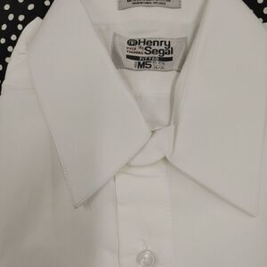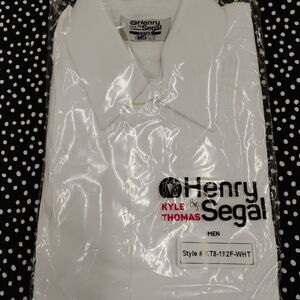HENRY SEGAL WHITE FITTED MICROFIBER LAY DOWN COLLAR DRESS SHIRT.