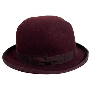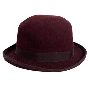HENSCHEL Capone Derby Trilby Bowler Hat Burgundy Pure Wool Fabric Band SZ M USA
