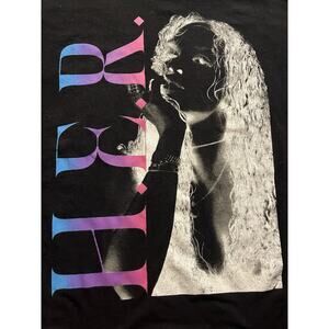 Celebrate soulful vibes with this H.E.R. tour tee from the “Back of My Mind” concert series. Featuring a striking photo graphic of the artist on the front with bold gradient H.E.R. lettering, and a full tour city list on the back. Made from 100% cotton with a classic black base—perfect for fans, collectors, or anyone looking to rep a Grammy-winning legend in style.