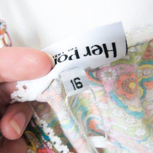 Size: 16, XXL Gorgeous Printed cropped tank with vibrant colors and retro floral paisley print. New with tags! Size: labeled 16 pit to pit 17" across length 16.5" Details adjustable straps cropped fit lace/bow tie detail material: 100% cotton bamboo color: orange multicolor Tags: festival bohemian her pony the label tank top cami top festival top tank top urban outfitters free people reformation zara bamboo tank top plus size summer tank