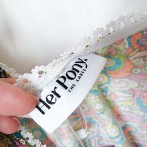 HER PONY THE LABEL Fantasia Cami Top Multicolor Retro Printed Cropped Tank NWT!