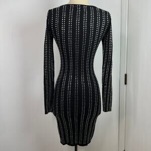 HERA Collection Women's Retro Bodycon Studded Black Dress Long Sleeves Size S