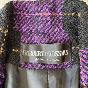 HERBERT GROSSMAN Vintage USA Nubby Jacket Women's Size 10 Purple Black Plaid