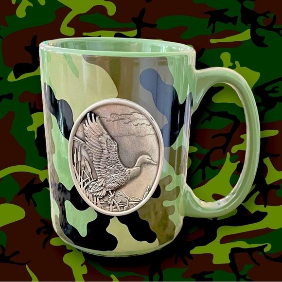 HERITAGE Metalworks Mallard 3D Pewter Emblem on 15 oz Camouflage Mug