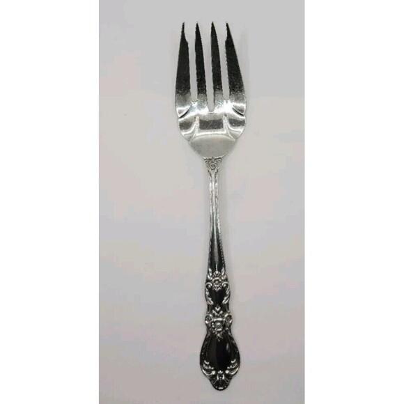 This elegant serving fork is a beautiful addition to any collection. Made by 1847 Rogers Bros in the Heritage pattern, this silverplate piece features a stylish Mid-Century Modern design that is perfect for any occasion. The fork is in excellent shape and has been well-preserved, showcasing its post-1940 age with pride.