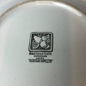 Heritage Mint "BLACK FOREST FRUITS" dinner plate, measuring 10 1/2" in diameter, hand painted multi color fruit design. This plate is in excellent condition - no chips or damage.