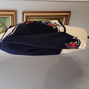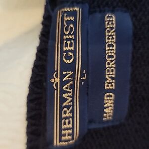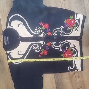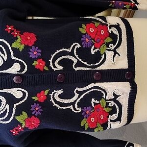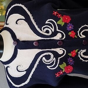 HERMAN GEIST hand embroidered coastal granny cardigan sweater size large blue