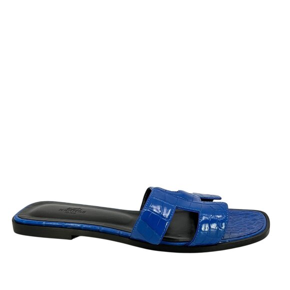 HERMES Alligator Leather Oran H Logo Sandals Size 11