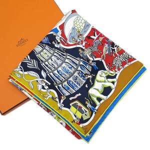 HERMES Authentic Blue Silk Scarf