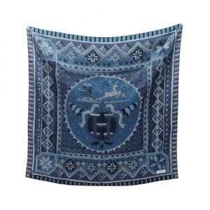 HERMES Authentic Blue Silk Scarf