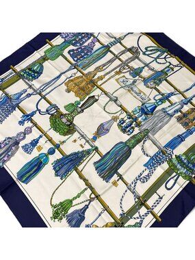 HERMES Authentic Blue Silk Scarf