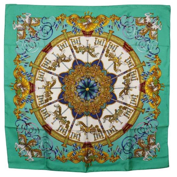 HERMES Authentic Green Silk Scarf