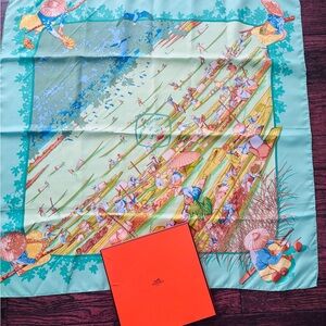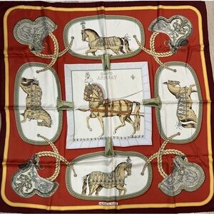 HERMES Authentic Red Silk Scarf