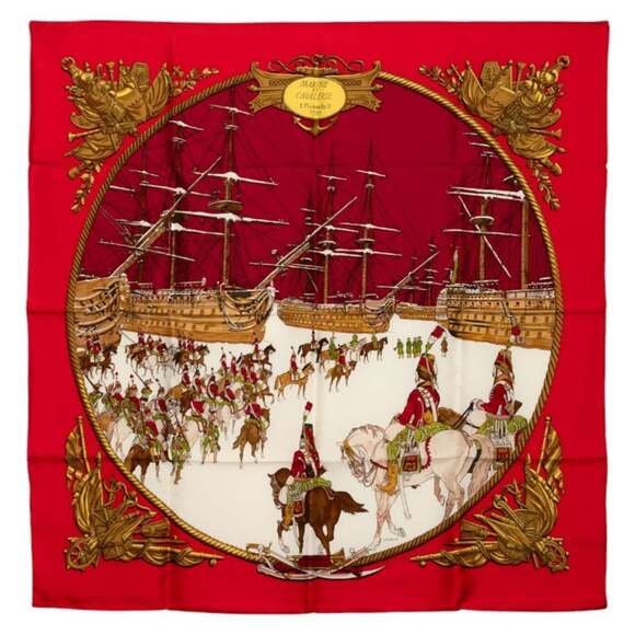 HERMES Authentic Red Silk Scarf