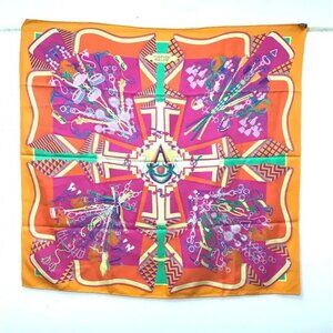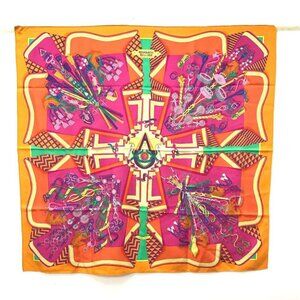 HERMES BOUQUETS SELLIER Carre90 Scarf silk Orange/pink