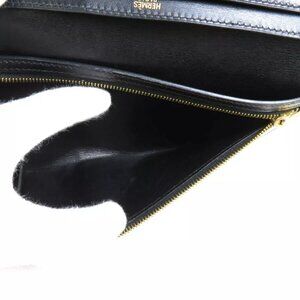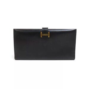 HERMES Bearn Classic Bifold Long Wallet Black/Gold Box calf leather