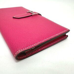 HERMES Bearn Souffle Long Wallet Epsom pink/SilverHardware