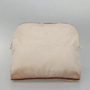 HERMES Bolide Pouch Canvas 2Set Beige Red Silver Auth