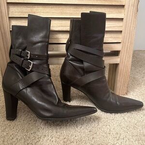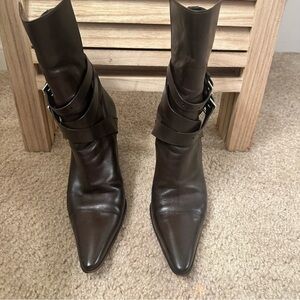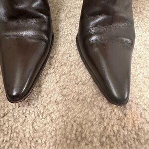 Condition:very good, minor signs of wear. There are some color changes on the toe tip of the shoe, but absolutely not noticeable. There are some minor scratches on the heels of the shoes. Everything shown in the pictures. No flaws, no damage.
