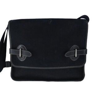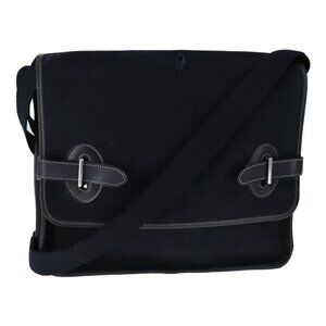 HERMES Buenaventura Shoulder Bag Canvas Black Auth