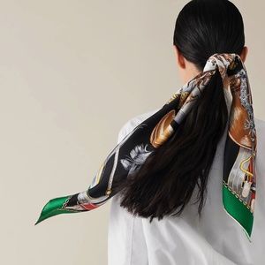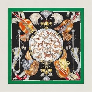 HERMES Calvacades Scarf 90 Green Brown Black New with Tags