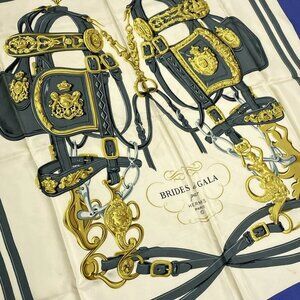 HERMES Carre 90 Blue Light gray Gold Scarf 174-072425