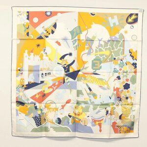 HERMES Carre 90 Scarf ""CA DECOIFFE!"" Silk Beige Auth 137450M