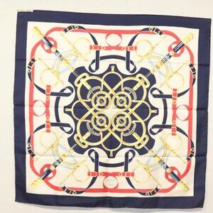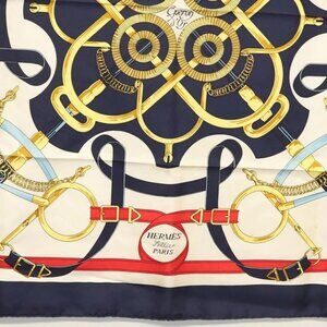 HERMES Carre 90 Scarf ""Eperon d'or"" Silk Navy Auth 142397