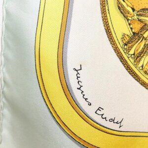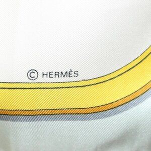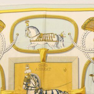 HERMES Carre 90 Scarf ""GRAND APPARAT"" Silk Light Blue Auth