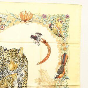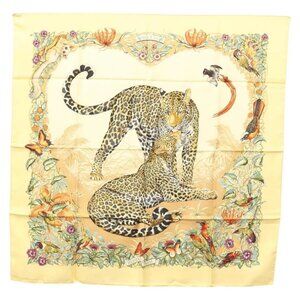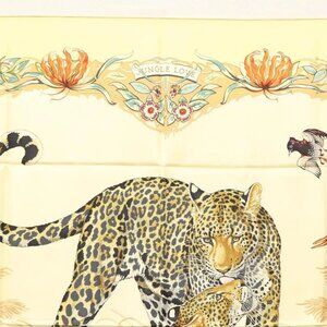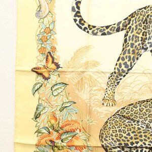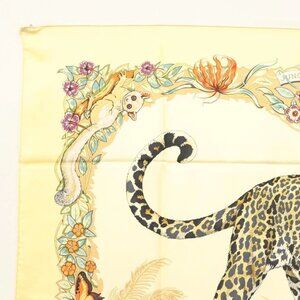 HERMES Carre 90 Scarf ""JUNGLE LOVE"" Silk Beige Auth 123050