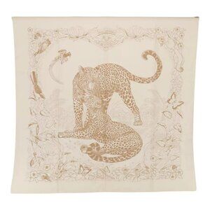 HERMES Carre 90 Scarf JUNGLE LOVE Silk White Auth am6952