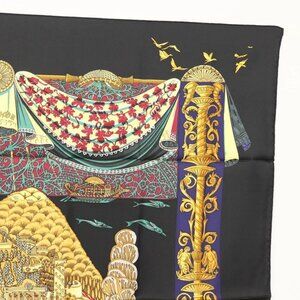 HERMES Carre 90 Scarf ""L ATLANTIDE"" Silk Black Auth am8297