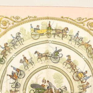 HERMES Carre 90 Scarf ""LA PROMENADE DE LONGCHAMPS"" Silk Pink Auth