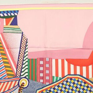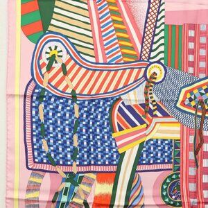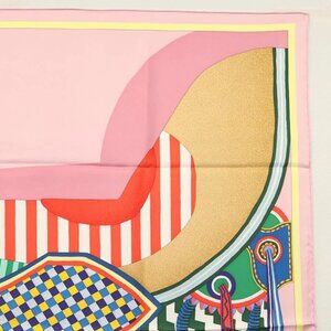 HERMES Carre 90 Scarf ""LA SELLE IMAGINARE"" Silk Pink