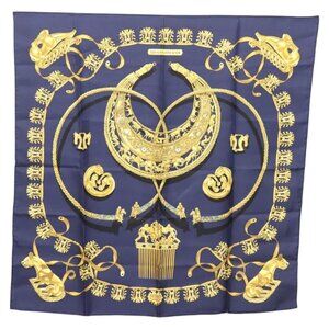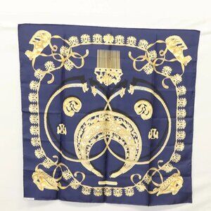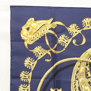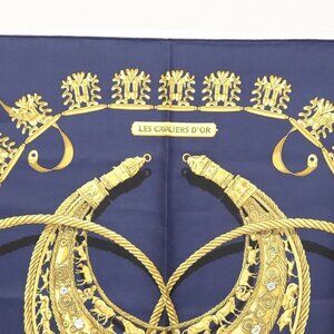 HERMES Carre 90 Scarf ""LES CAVALIERS D'OR"" Silk Navy Auth