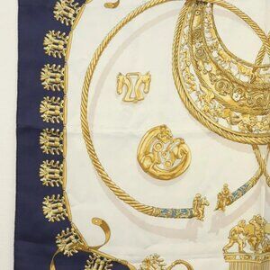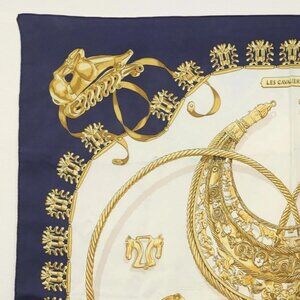 HERMES Carre 90 Scarf ""LES CAVALIERS D'OR"" Silk Navy Auth