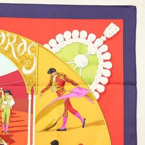 HERMES Carre 90 Scarf ""PLAZA DE TOROS"" Silk Orange Auth am8844