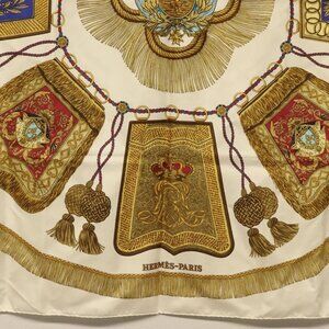 HERMES Carre 90 Scarf ""POSTE ET CAVAIENE"" Silk White Auth