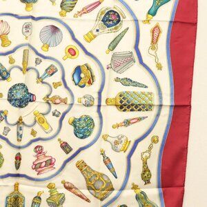 HERMES Carre 90 Scarf ""Pourvu qu'on oit l'ivresse"" Silk White Auth am8729