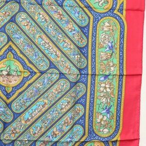 HERMES Carre 90 Scarf ""QALAMDAN"" Silk Red Auth 1