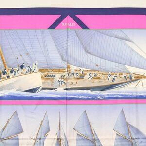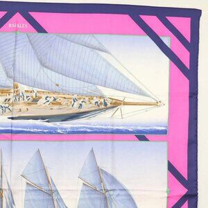 HERMES Carre 90 Scarf ""REFALES"" Silk Blue Auth
