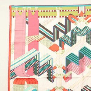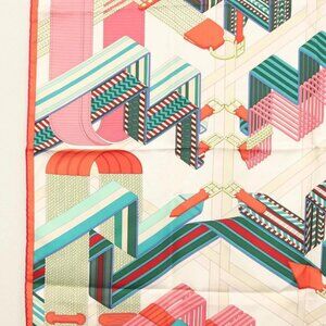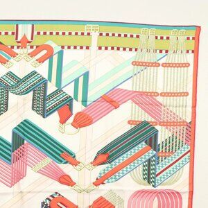HERMES Carre 90 Scarf ""SANGLES EN ZIGZAG"" Silk Green Auth 135934